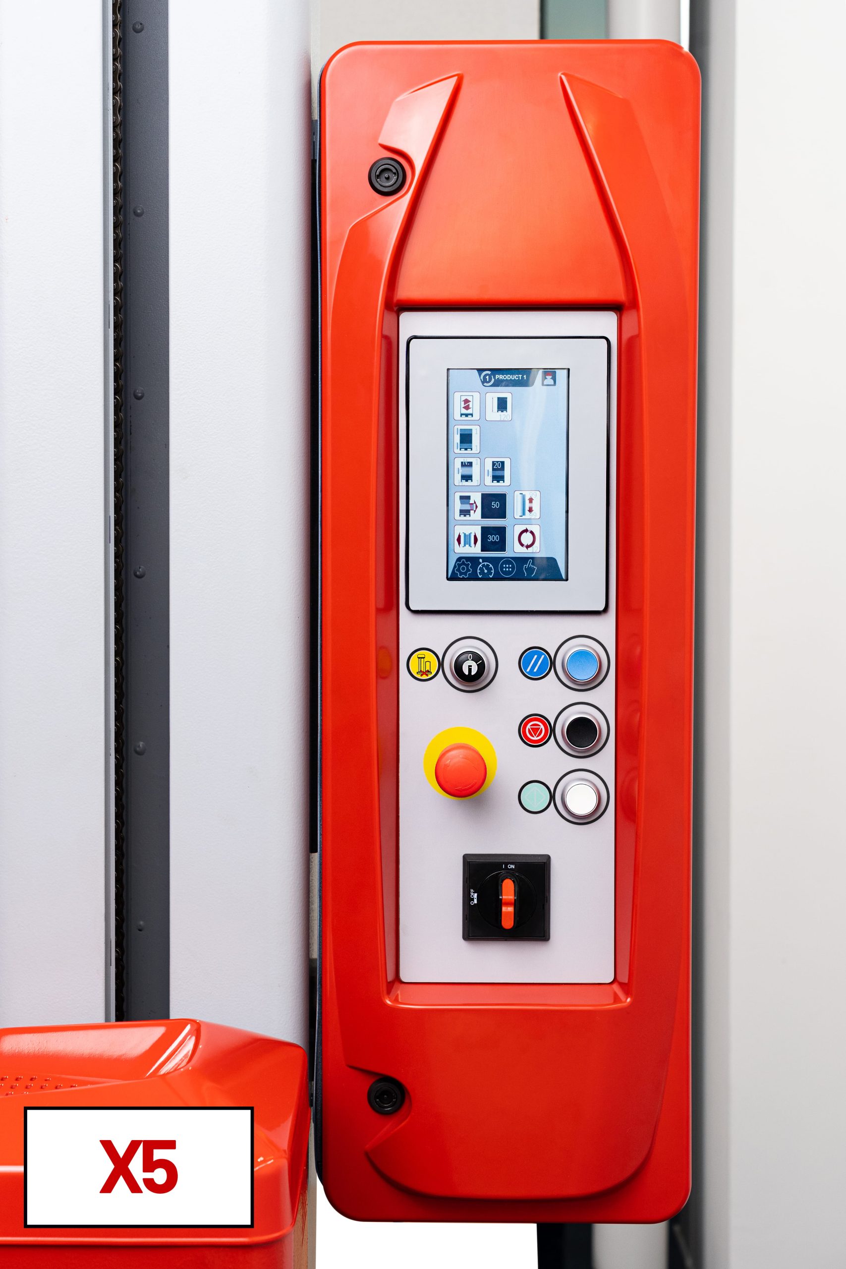 FREESBY T3 má dva uživatelsky přívětivé a inovativní ovládací panely (ovládací panely X4 a X5), které jsou užitečné pro programování a sledování všech cyklů stroje s možností úpravy velikosti napětí fólie a přizpůsobení programů balení.